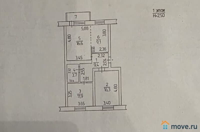 Удобная планировка квартиры: кухня совмещена с гостиной (площадь 25,7 м2) и две раздельные спальные площадью 16,3 и 11,9 м2, совмещенный санузел, просторный коридор площадью 9,4 м2 и большая застекленная лоджия площадью 2 м2.