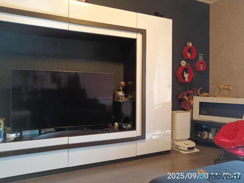 ? Уютную гостиную с мягким шикарным диваном и белоснежной модульной стенкой для хранения одежды. За прохладные и комфортные условия отвечает кондиционер.